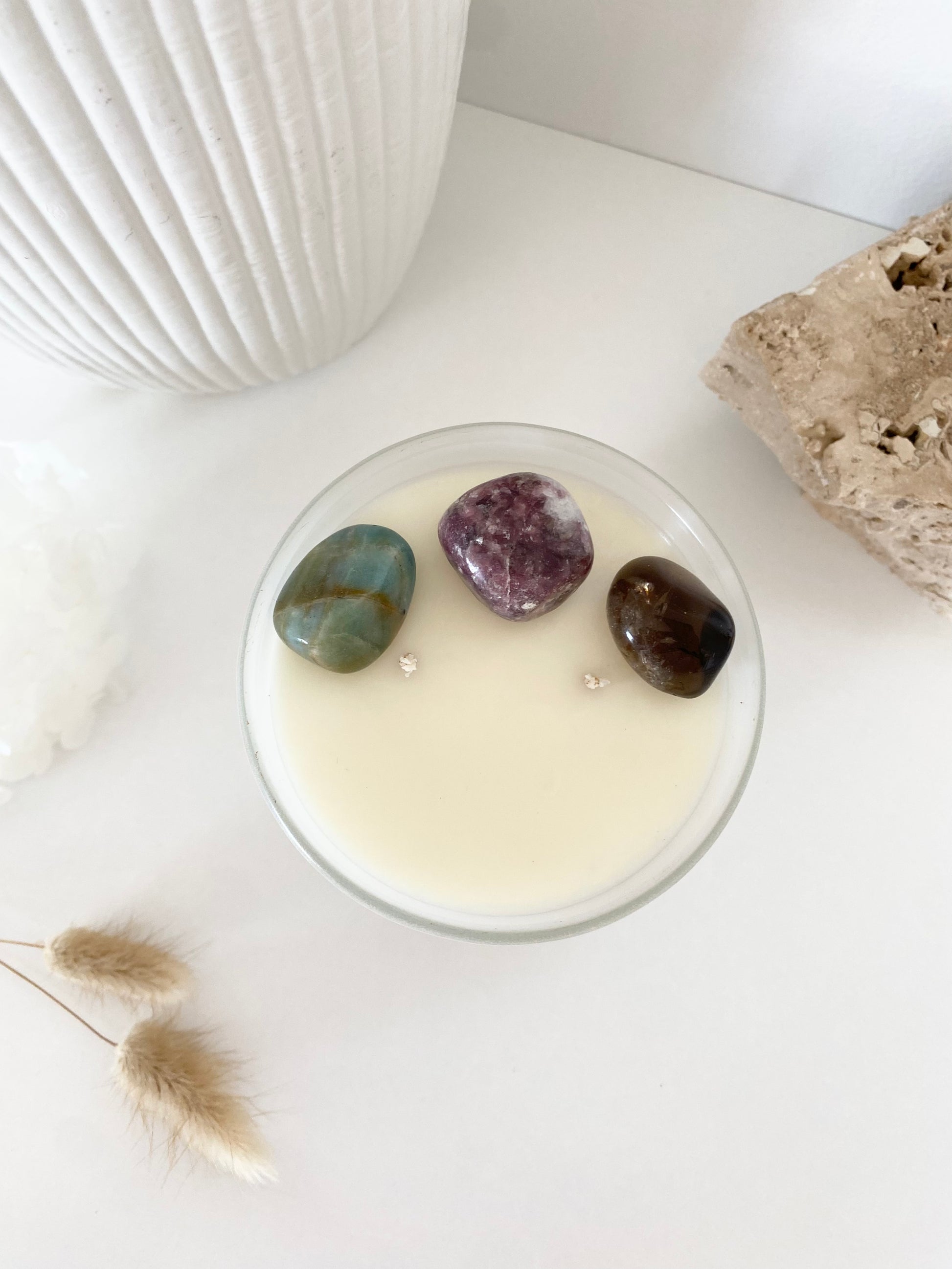 CRYSTALS | Remove crystals before lighting your candle. To clean crystals of candle wax, gently wipe with a warm, damp disposable cloth.